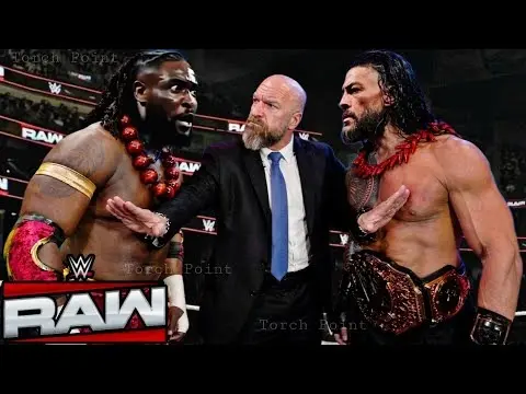 Roman walked to the ring with his trademark cool confidence, lifting his chin slightly as he surveyed the fans around him, projecting an image of absolute dominance that seemed to announce that this night would not be like the others. Meanwhile, in the center of the ring was Oba Femi, standing with a firm and defiant stance that showed that he was not willing to back down from any threat, not even one of the most feared names within WWE.